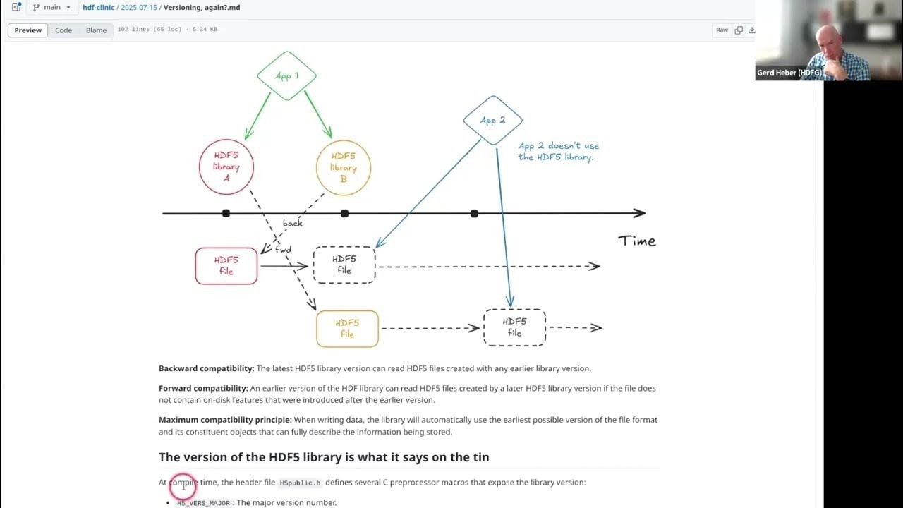 In this episode, we review versioning in the context of the HDF5 library and file format, and its implications for compatibility, interoperability, and data longevity. Everybody understands backwards compatibility, but when I heard forward compatibility for the first time, I thought of the movie “Back to the Future.” I will try to answer questions such as “Why can’t there be a single version just for the whole thing?” or “Why doesn’t an HDF5 file have a (default) version?” The fundamental complexity around versioning stems from the conflict between innovation and interoperability, which is a, if not the, central element of HDF5 design philosophy. The good news is that, except for developers, data planners, curators, archivists, system administrators, and HPC center staff, this discussion may be an obscure technical detail.