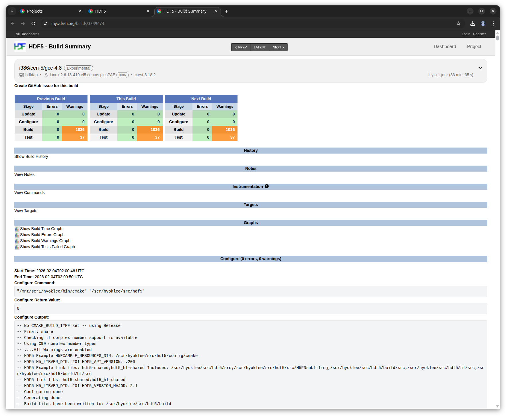 The details are visible though: HDF5 - Build Errors